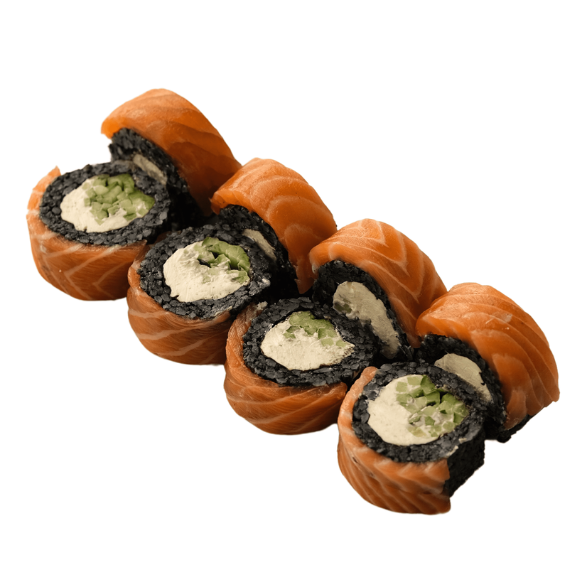 Лосось, огірок, крем-сир, норі, рис,чорнило каракатиці.