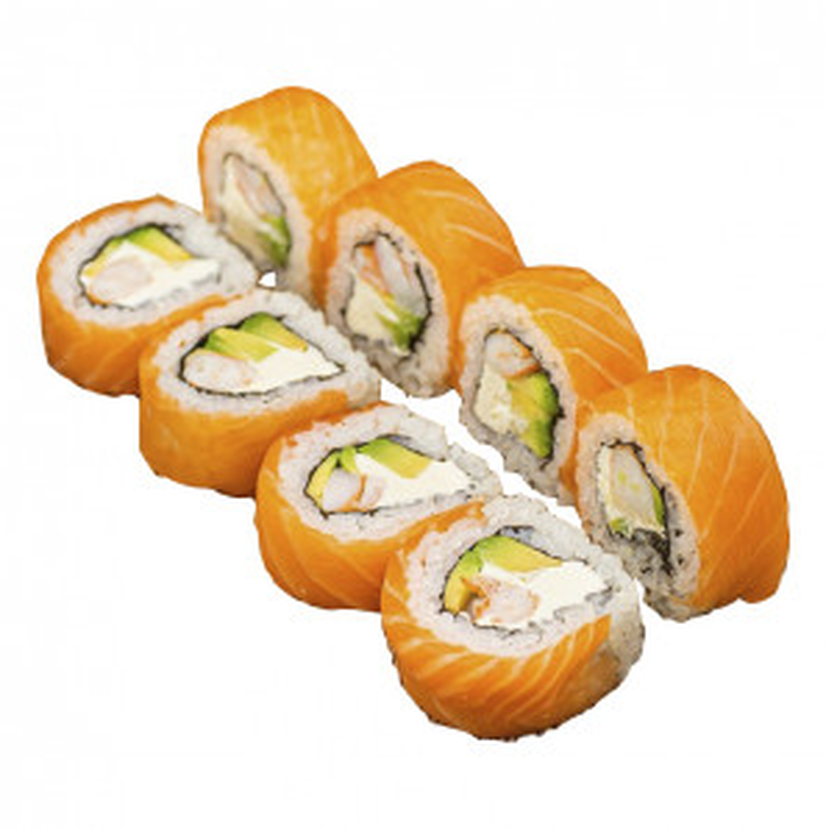Креветки, авокадо, лосось, соус спайсі,крем сир, рис, норі.- (гострий)