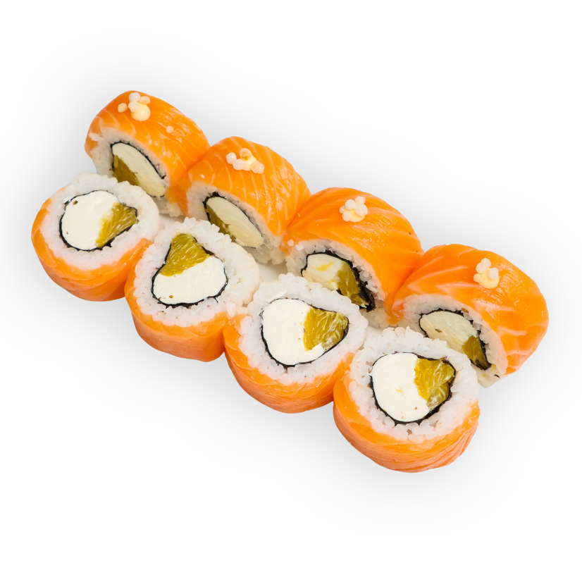 Лосось,крем сир,апельсин,соус манговий,рис,норі