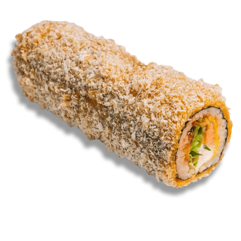 Креветка тигрова , огірок, соус солодкий чілі, крем-сир, сухарі панко, норі, рис,салат айсберг,соус сирний.