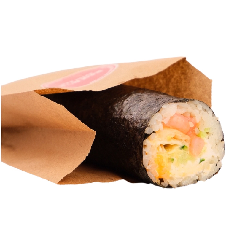 Креветка, крем сир, салат айзберг,огірок,соус спайсі, соус сметаний, рис, норі