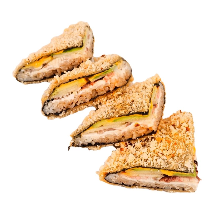 Вугорь, сир чедер, крем сир, груша,авокадо,соус унагі, сухарі панко, норі, рис