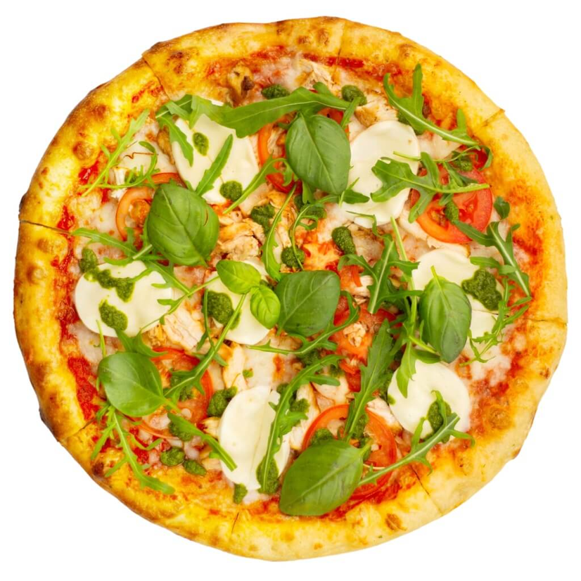 Куряче філе смажене, сир моцарела, помідори, соус чімічурі, рукола,сир моцарела чері.