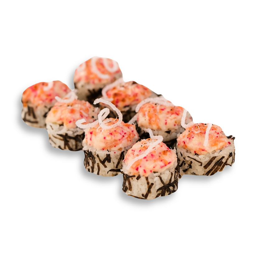 Креветки тигрові, пармезан,сир моцарелла, манго, авокадо, ікра тобіко, крем-сир, норі, рис