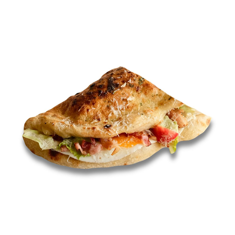 Яйце куряче,бекон свинний,помідори черрі,соус сметанний,пармезан,крем сир.