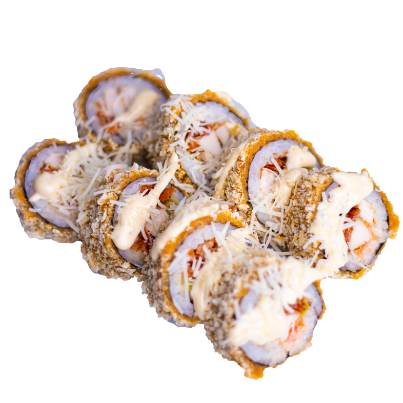 Бекон, куряче філе,соус цезар, пармезан, салат айсберг, сухарі панко,борошно темпура, норі, рис