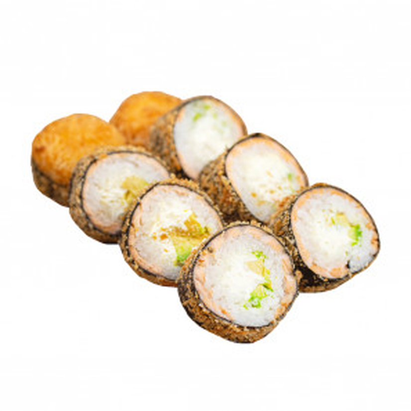 Лосось, авокадо, крем-сир, сухарі Панко, норі, рис
